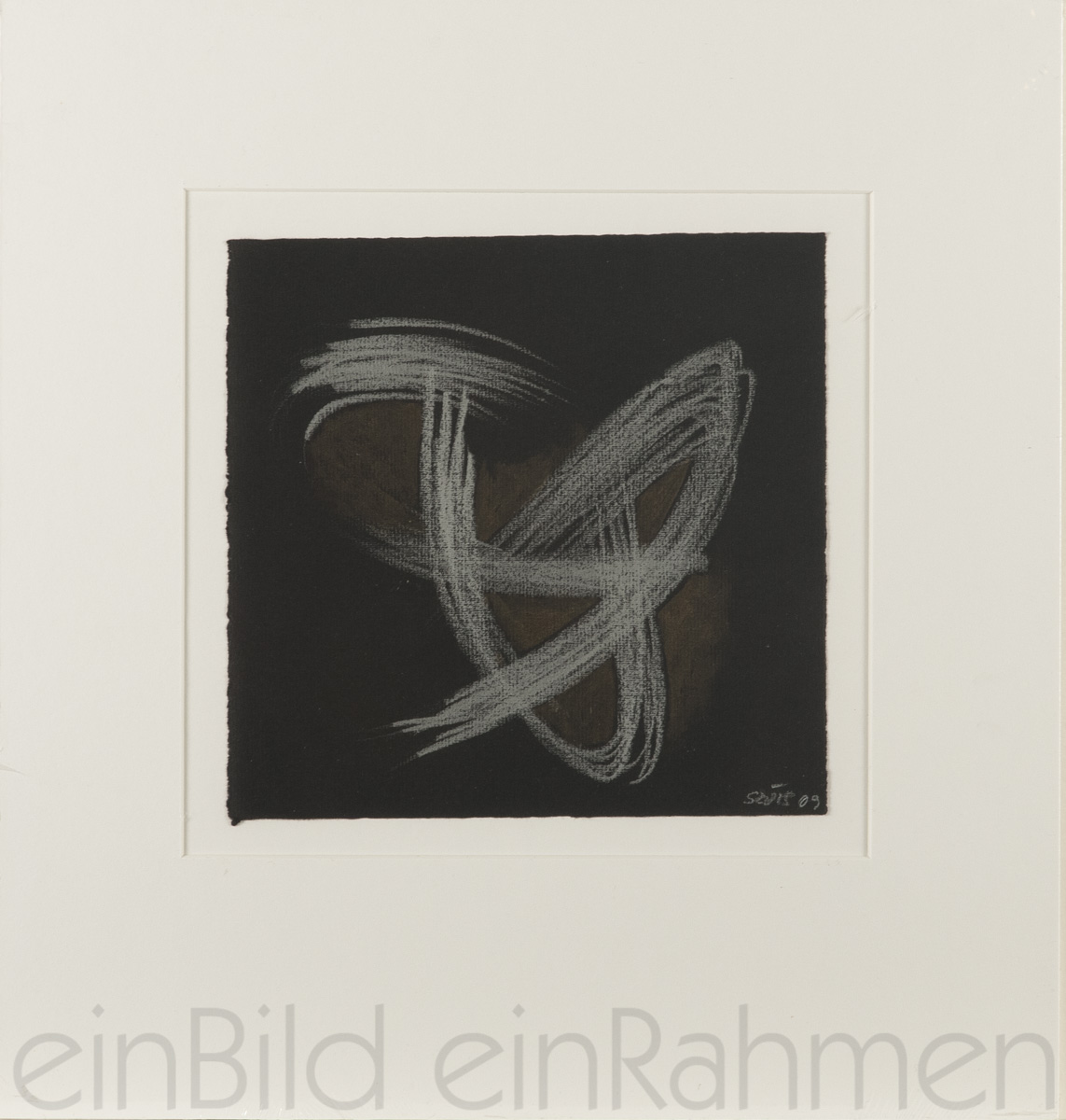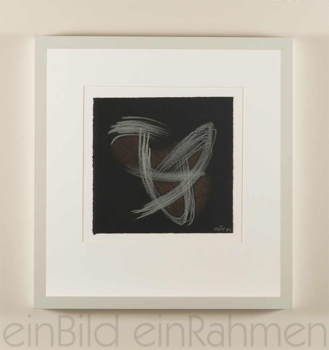 Das Bild ist durch ein säurefreies Klebeband mit dem Passepartout verbunden.