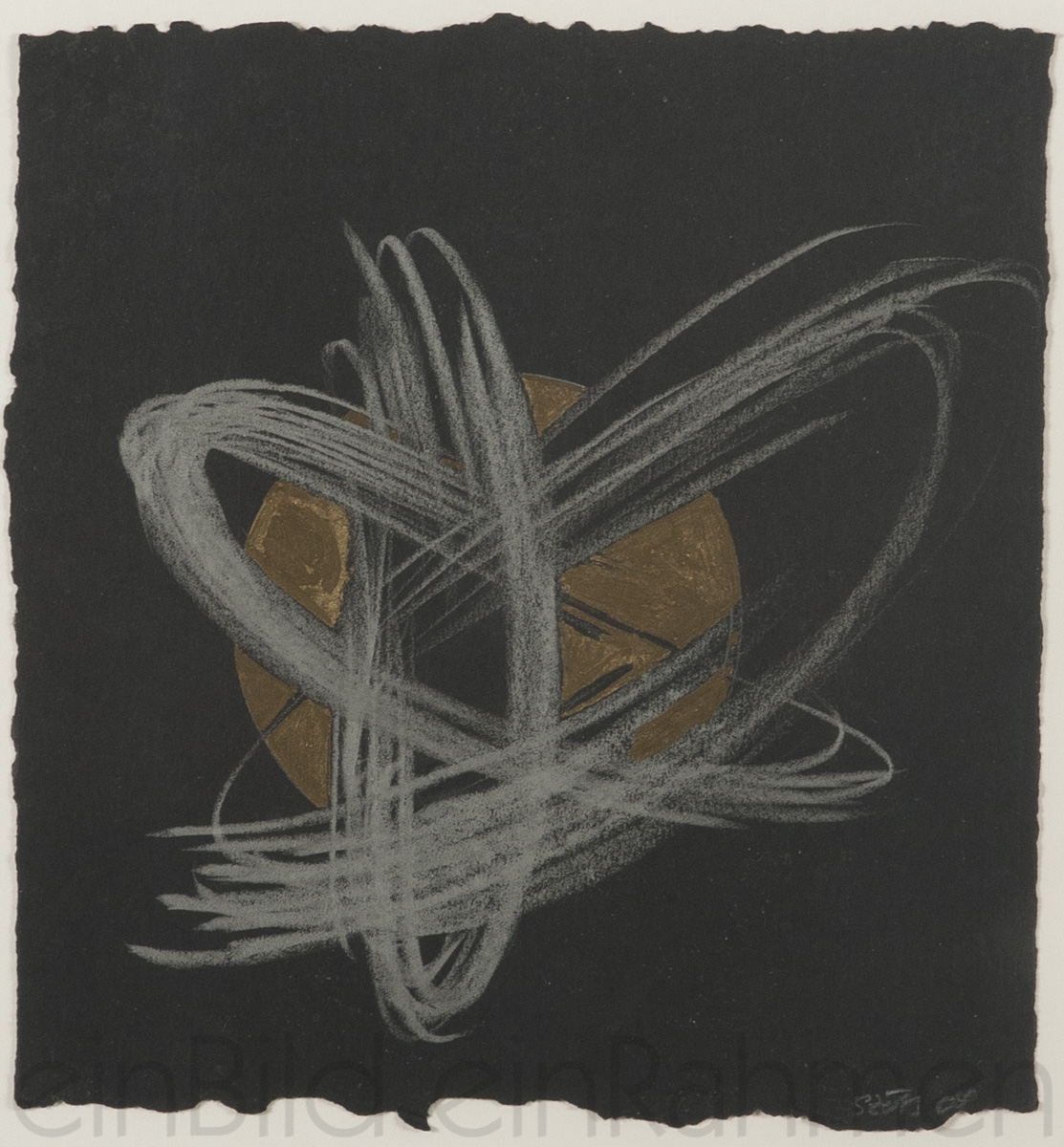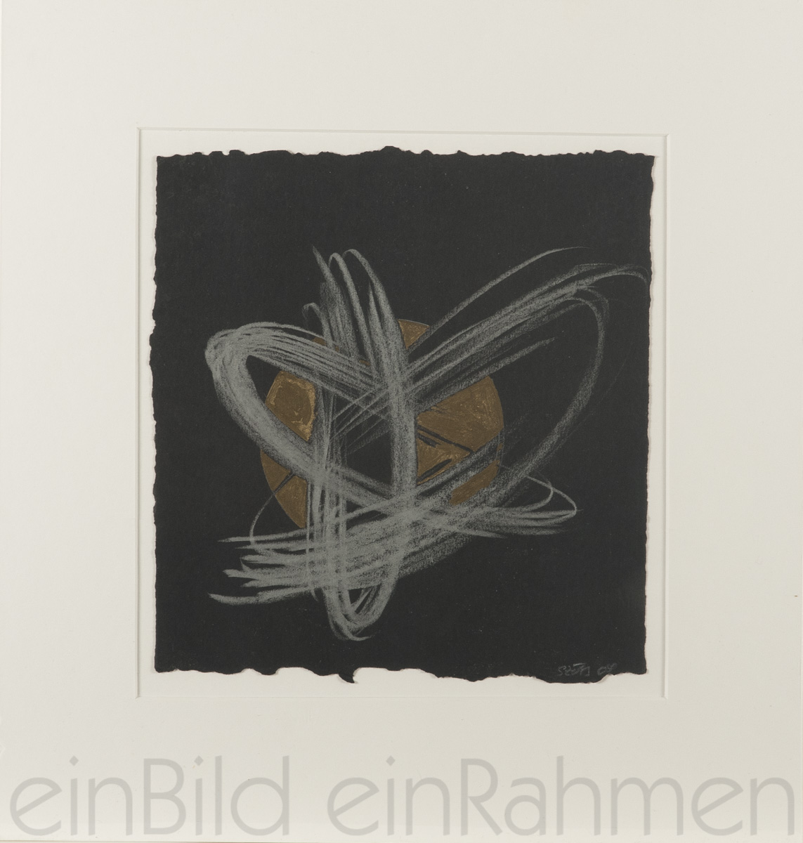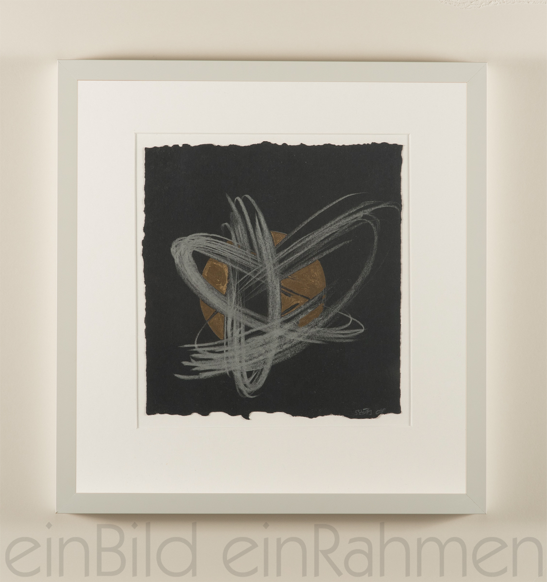 Das Bild ist durch ein säurefreies Klebeband mit dem Passepartout verbunden.