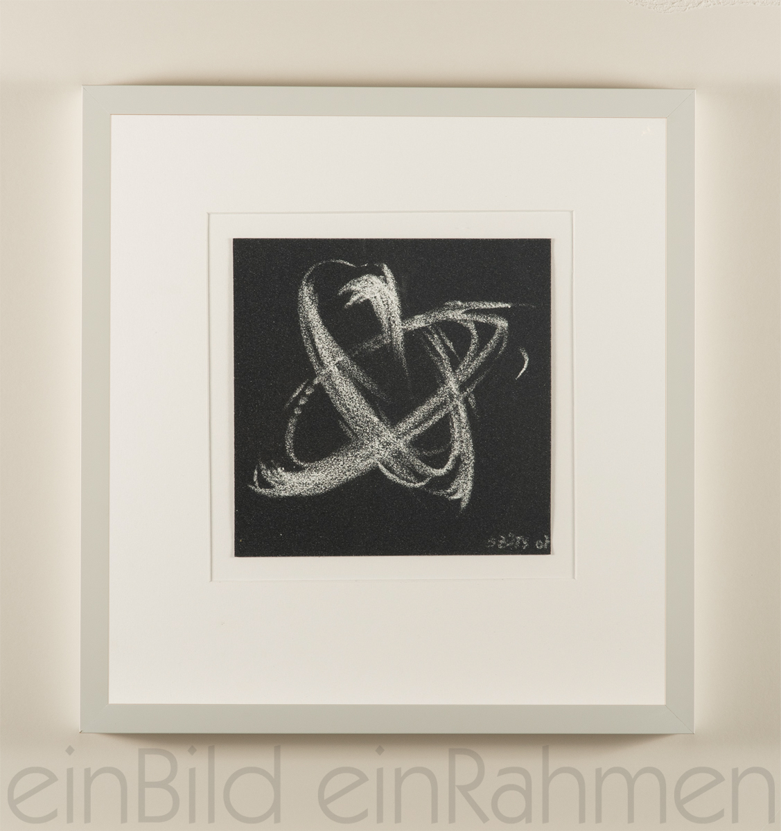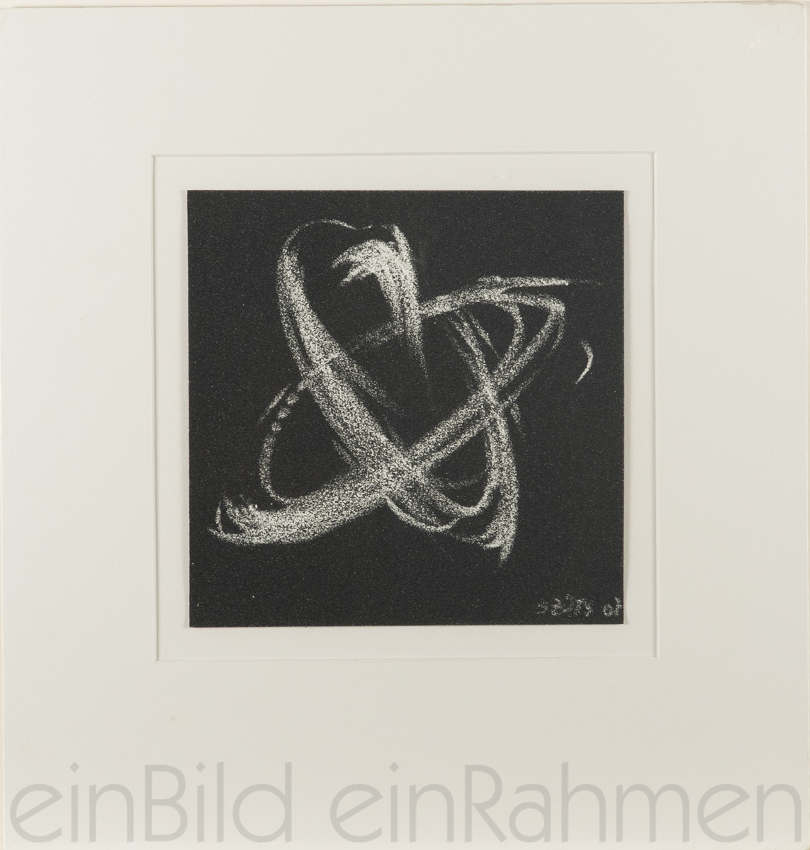 Das Bild ist durch ein säurefreies Klebeband mit dem Passepartout verbunden.
