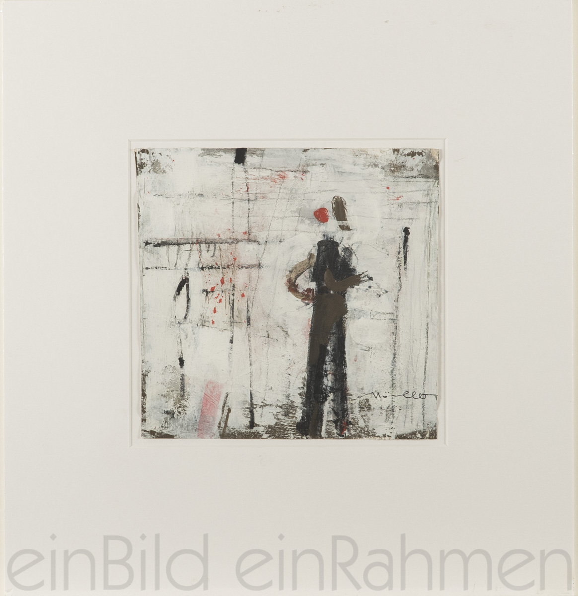 Das Bild ist durch ein säurefreies Klebeband mit dem Passepartout verbunden.