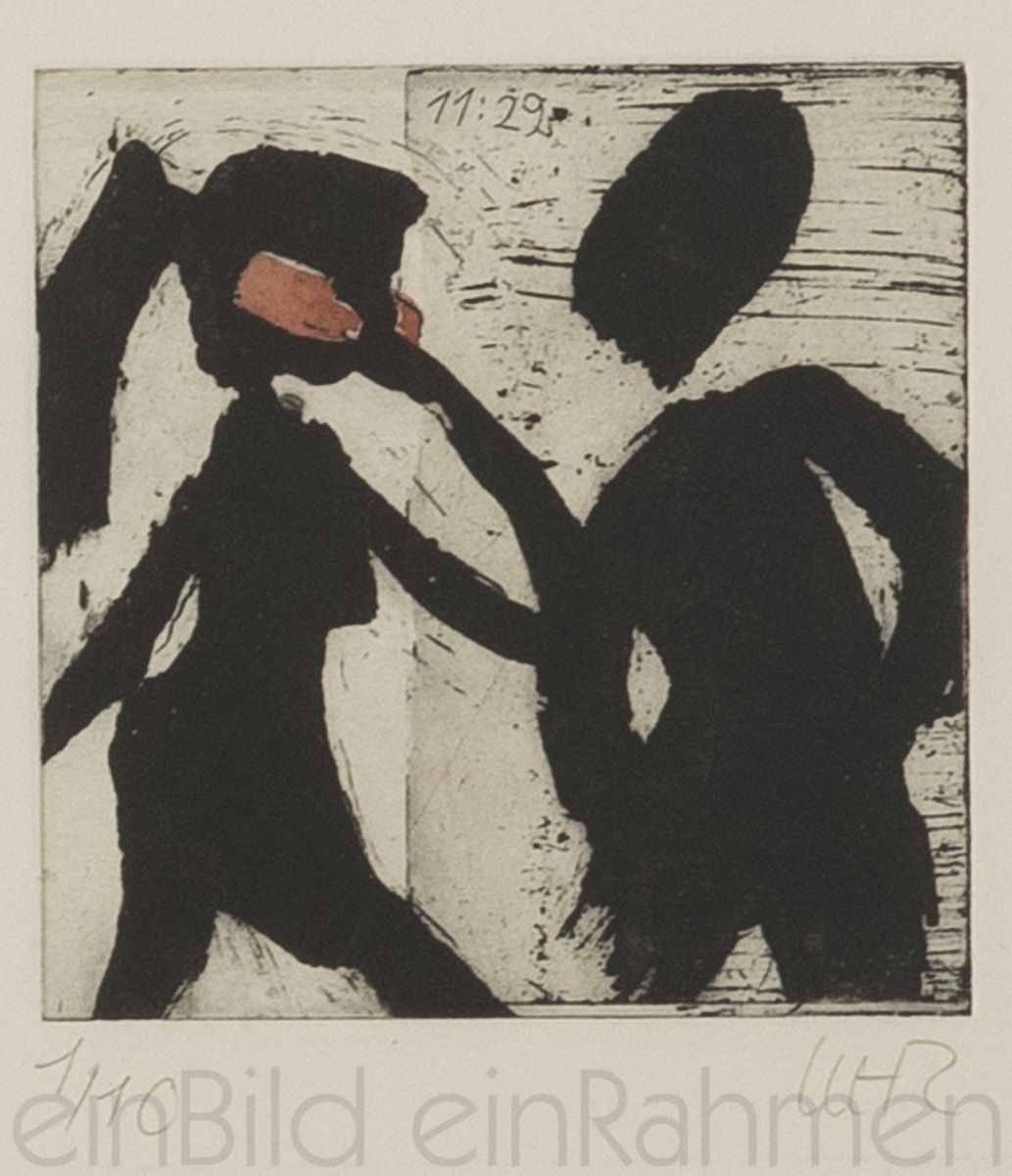 Das Bild ist durch ein säurefreies Klebeband mit dem Passepartout verbunden.
