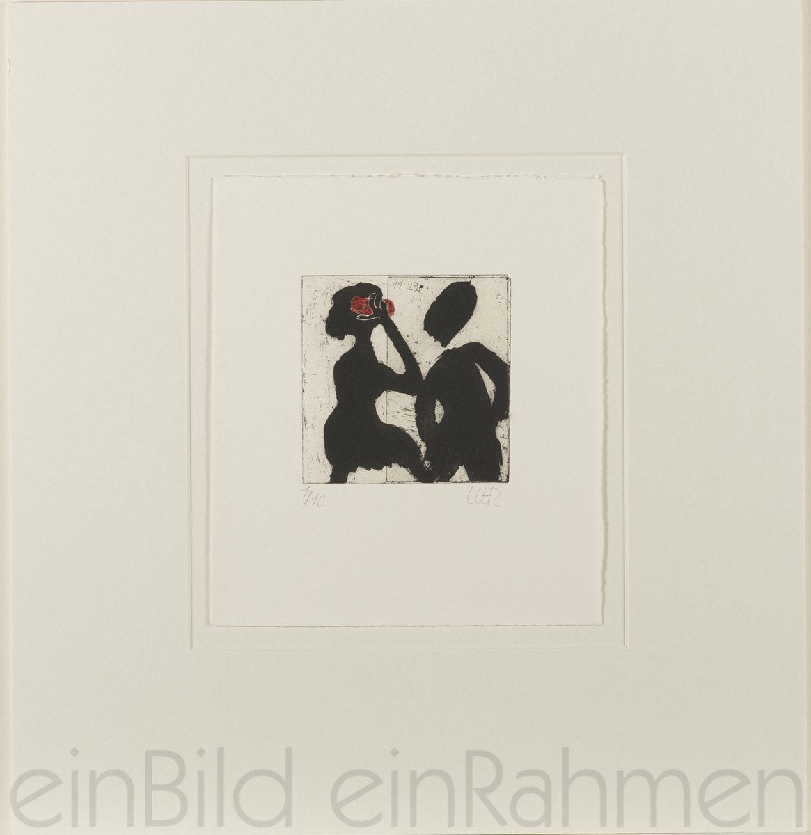 Das Bild ist durch ein säurefreies Klebeband mit dem Passepartout verbunden.