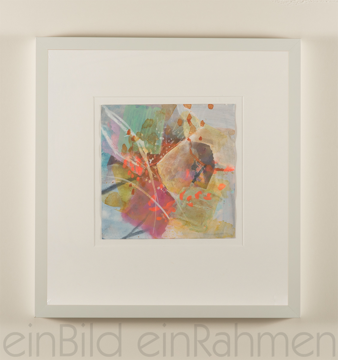 Das Bild ist durch ein säurefreies Klebeband mit dem Passepartout verbunden.